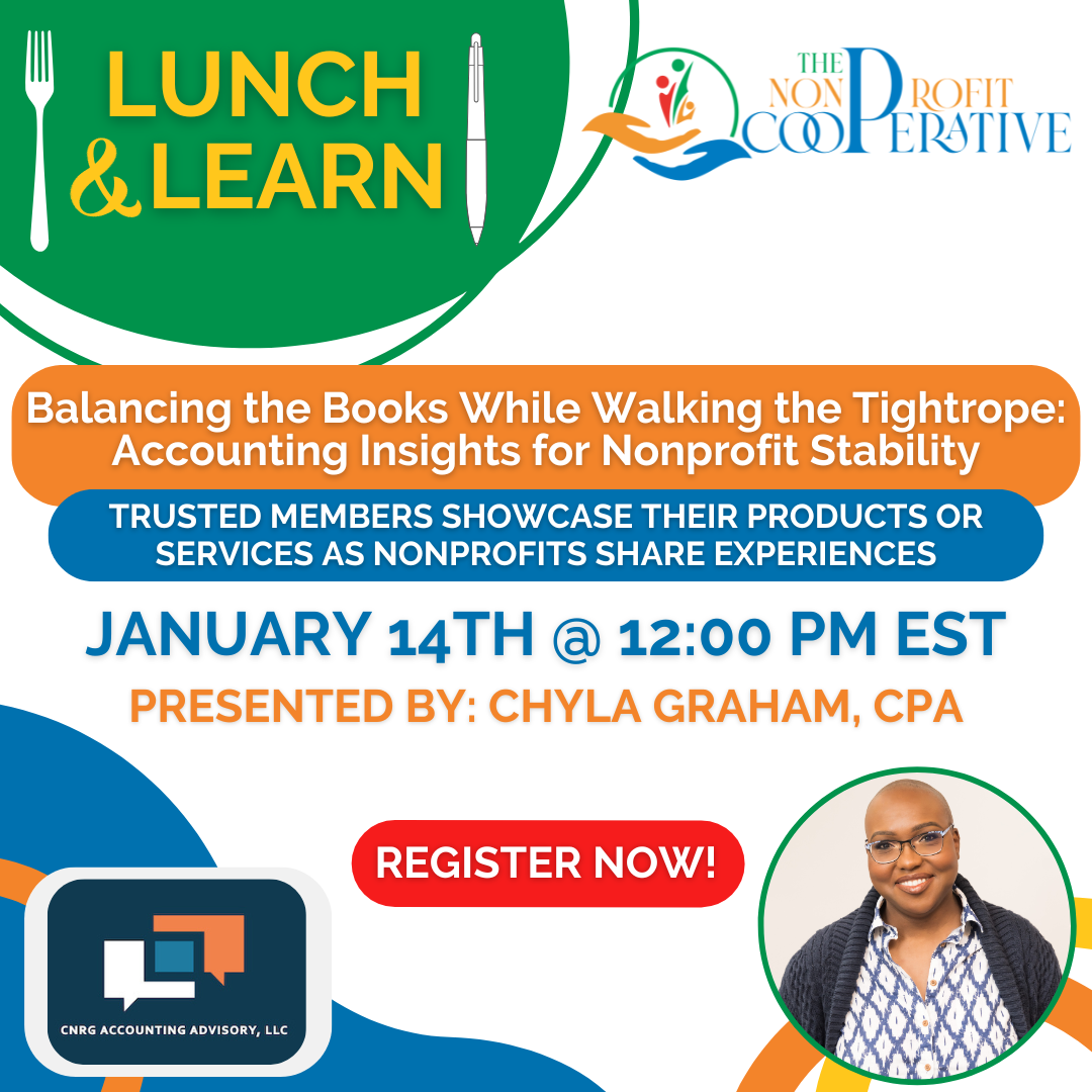 At The Nonprofit Cooperative, we’re dedicated to empowering nonprofit organizations through our dynamic and free events. From workshops and webinars to summits, lunch & learns, meet & greets, and panel discussions, our events offer valuable insights, strategies, and networking opportunities to help you achieve your mission and drive impactful change.